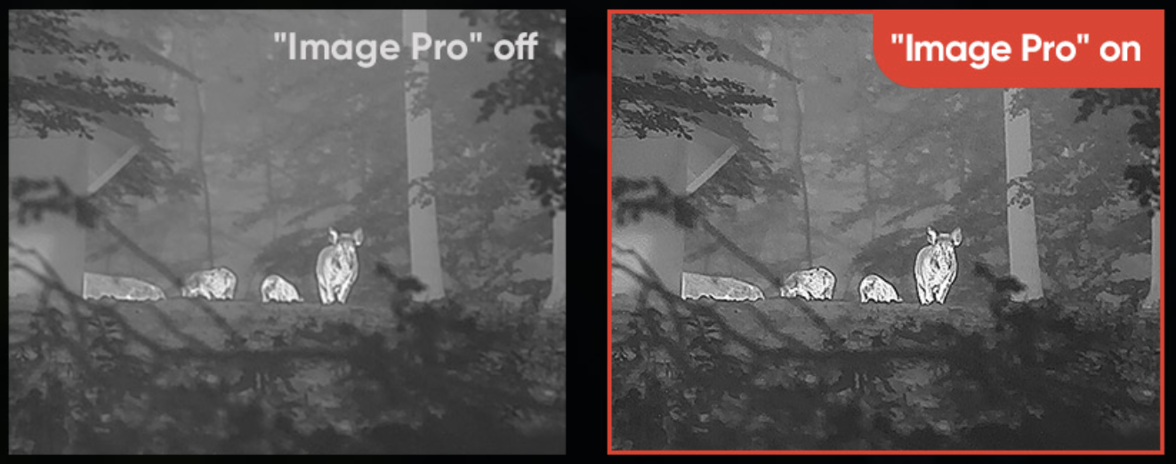 Image Pro, het door HIKMICRO zelfontwikkelde beeldverwerkingsalgoritme, zorgt voor maximale digitale beeldoptimalisatie, afhankelijk van het doel en de omstandigheden van de observatie. Het levert hoogwaardige weergave van zowel doelobjecten als de achtergrond.